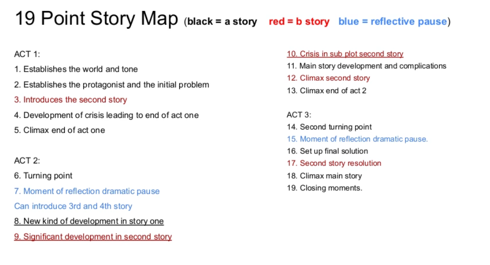 Nevertheless, I wrote my short film story according to this 19 point structure and was shocked to discover the story / treatment I have been working on for the last 4 weeks fit the 19 point structure perfectly.