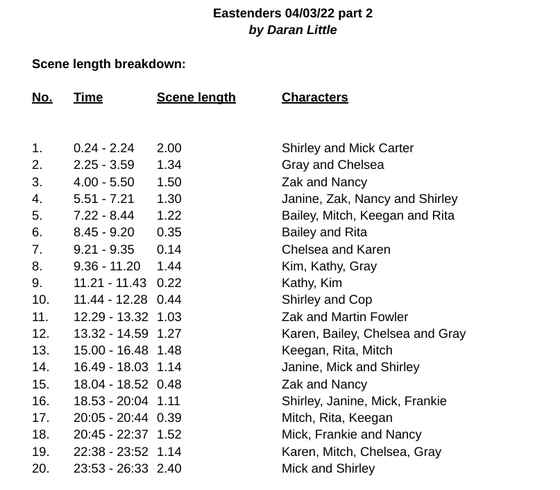 Notice that like the episode previously studied, this episode has 20 scenes.