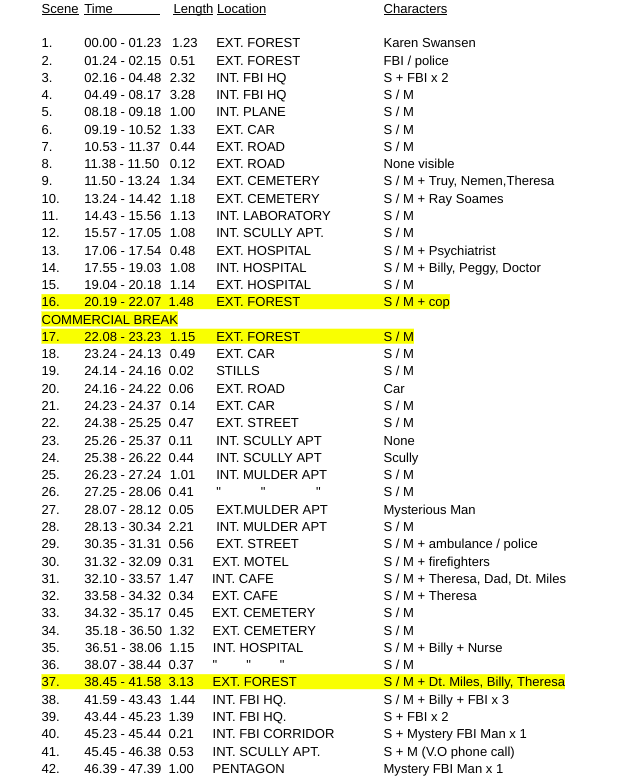However, scene 16 & 17 either side of the commercial break, are actually one scene.