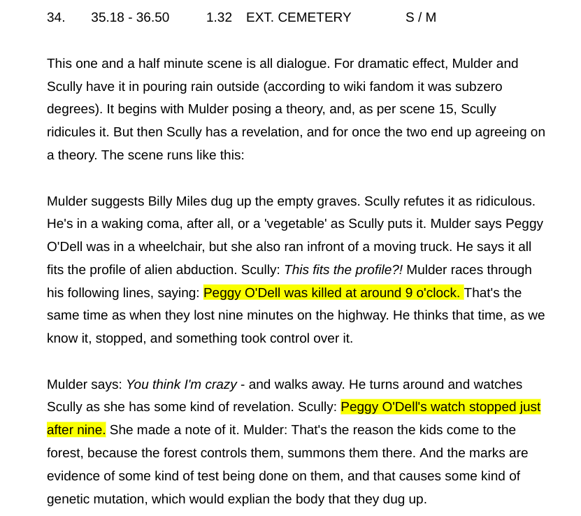Furthermore, in scene 34, both Mulder and Scully refer to this particular time.